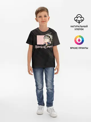 Детская базовая футболка / Чёрный клевер Аста в розовом