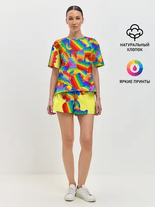 Женская футболка оверсайз / Разные Pop It масляная краска