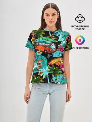 Женская футболка оверсайз / Пальмы, волны, серфинг