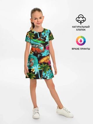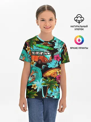 Детская пижама с брюками / Пальмы, волны, серфинг