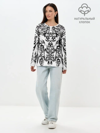Лонгслив женский. Хлопок / ТАТУ ЧЕРНО БЕЛОЕ УЗОР