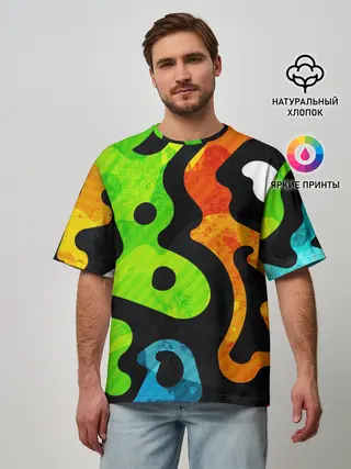 Мужская футболка оверсайз / Разноцветные Кляксы Фигуры
