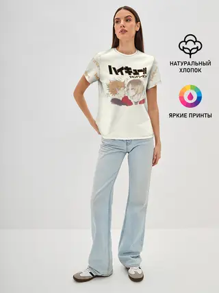 Женская футболка оверсайз / Кенма Козуме и Хината Сё | ВОЛЕЙБОЛ!!