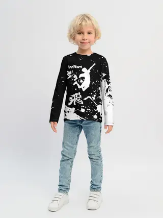 Детский лонгслив / Fly High Haikyu!! черно - белый
