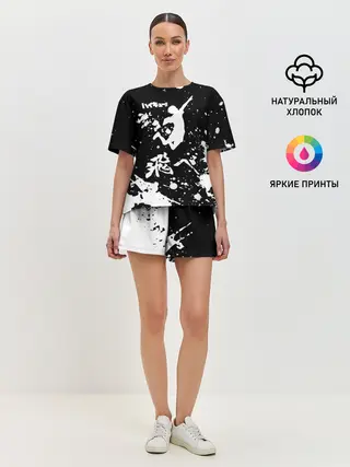 Женская пижама с шортами / Fly High Haikyu!! черно - белый