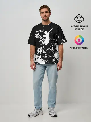 Мужская футболка оверсайз / Fly High Haikyu!! черно - белый