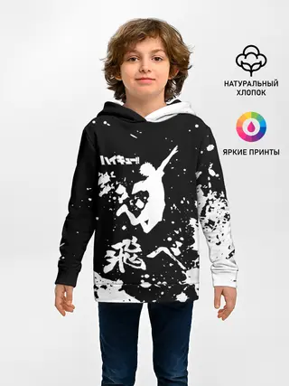 Детское худи / Fly High Haikyu!! черно - белый