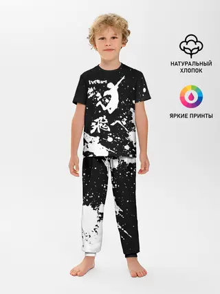 Детская пижама с брюками / Fly High Haikyu!! черно - белый