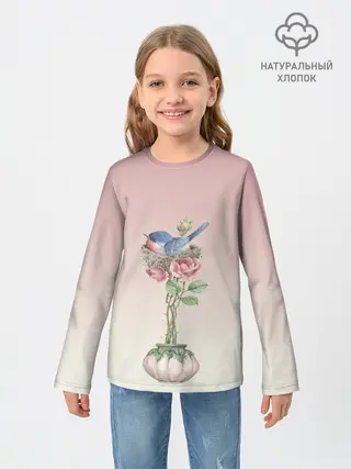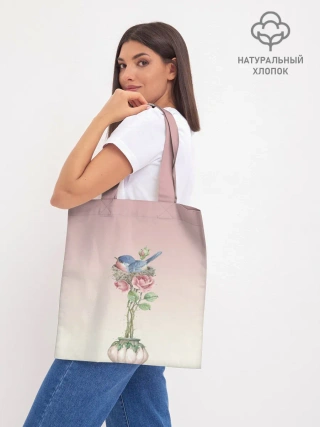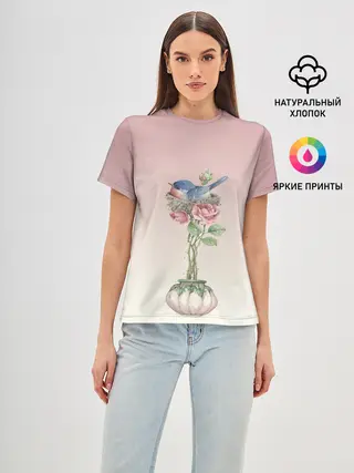 Мужская футболка оверсайз / Птичка в гнезде роза