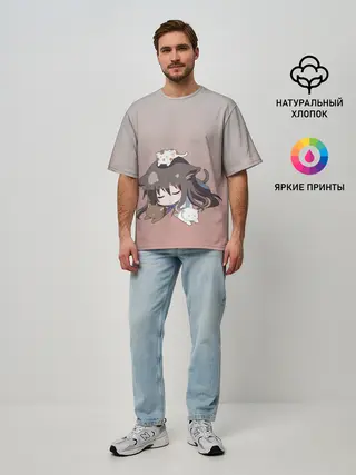 Мужская футболка оверсайз / малышка спит ушки котики