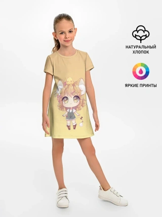 Женская футболка оверсайз / малышка чиби и цыпленок
