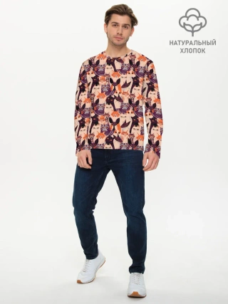 Мужской лонгслив базовый / Мемные Коты Паттерн