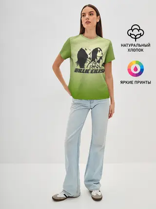 Женская базовая футболка / Билли Айлиш на зеленом фоне