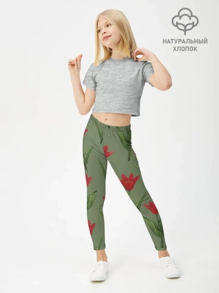 Леггинсы для девочки / Красные тюльпаны на зеленом