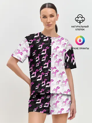 Женская пижама с шортами / Розовые джоджо на чернобелом