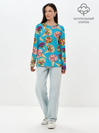 Лонгслив женский. Хлопок / Рожок цветов