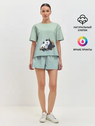 Женская футболка оверсайз / акварельные панды