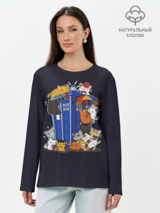 Лонгслив женский. Хлопок / Кошечки у Телефона