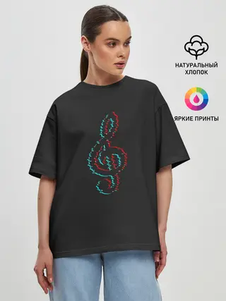 Женская футболка оверсайз / Скрипичный ключ. Неон