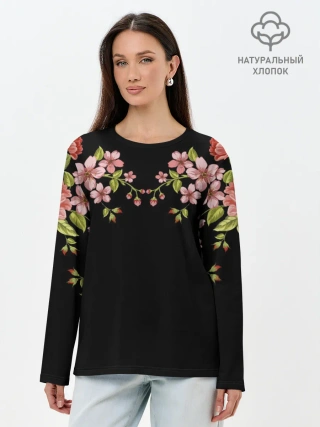 Лонгслив женский. Хлопок / Цветы