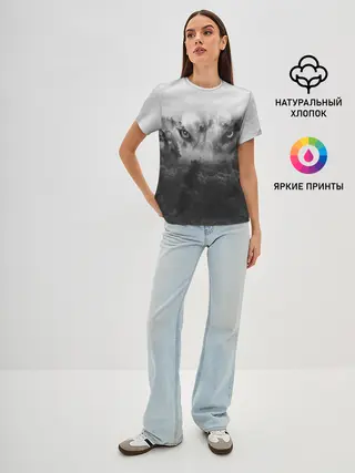 Женская футболка оверсайз / Волк в лесу
