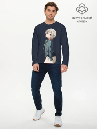 Мужской лонгслив базовый / Аниме Тян в джинсовке