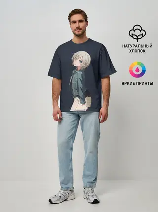 Мужская футболка оверсайз / Аниме Тян в джинсовке
