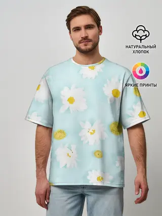 Мужская футболка оверсайз / Ромашки