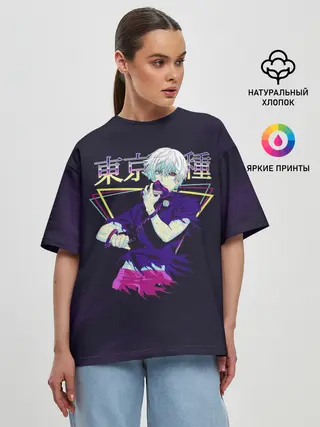 Женская футболка оверсайз / Канеки Кен под 80-е