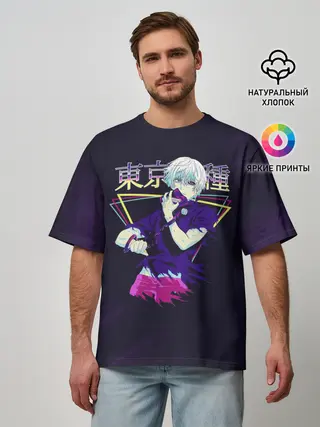 Мужская футболка оверсайз / Канеки Кен под 80-е