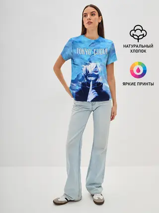 Женская базовая футболка / Kaneki Ken на синем фоне