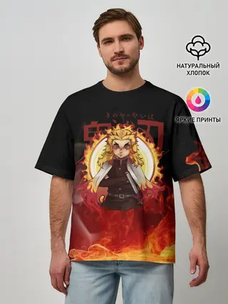 Мужская футболка оверсайз / Огненный Столп Kimetsu no Yaiba