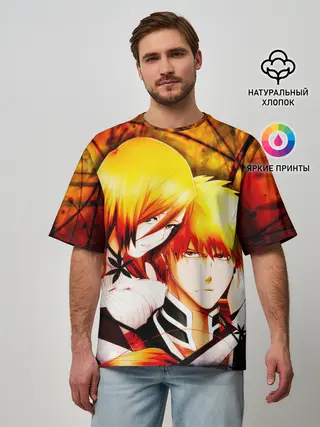 Мужская футболка оверсайз / Ичиго Куросаки и Орихиме Иноуэ