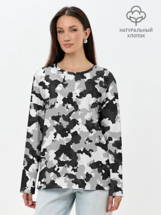 Лонгслив женский. Хлопок / Холодный камуфляж