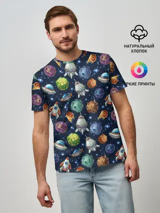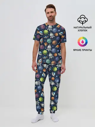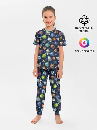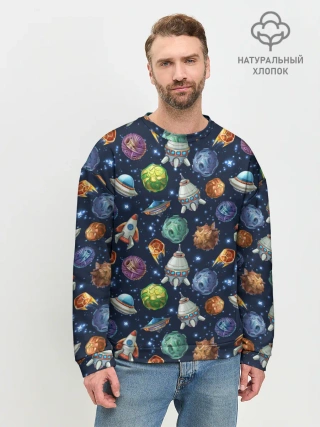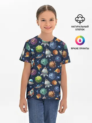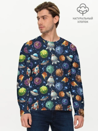 Лонгслив женский. Хлопок / Мультяшные планеты