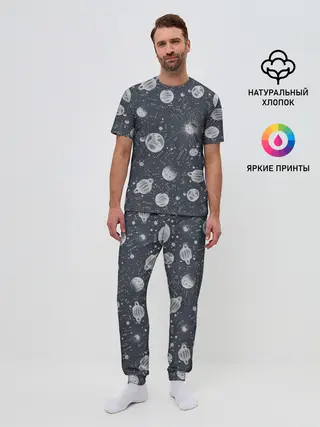 Мужская пижама с брюками / Звезды, планеты и созвездия