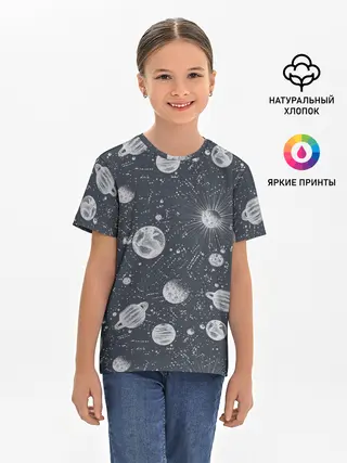 Детская базовая футболка / Звезды, планеты и созвездия
