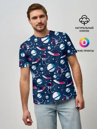 Мужская базовая футболка / Космонавты, планеты и нло