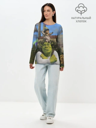 Лонгслив женский. Хлопок / Шрек, Кот и Осёл