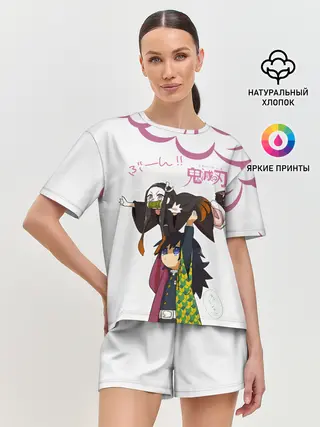 Женская пижама с шортами / Гию и Незуко Kimetsu no Yaiba