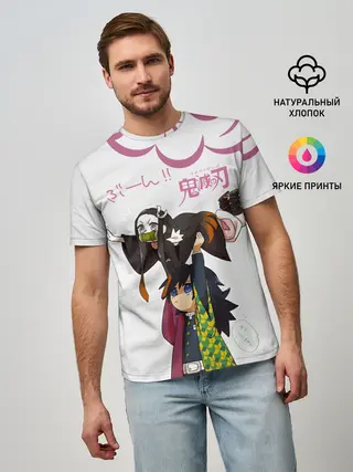 Мужская базовая футболка / Гию и Незуко Kimetsu no Yaiba
