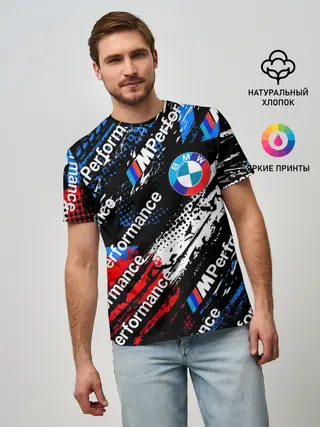 Мужская футболка оверсайз / BMW M PERFORMANCE / БМВ ГРАНЖ