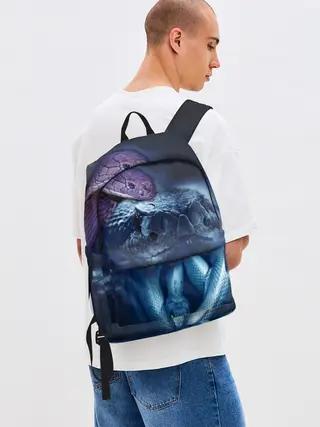 Рюкзак детский / ЗМЕЯ НА КАМНЕ НА ЧЕРНОМ ФОНЕ