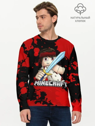 Мужской лонгслив базовый / Стив с мечом Minecraft
