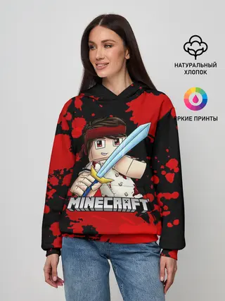 Худи мужской база хлопок / Стив с мечом Minecraft