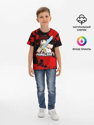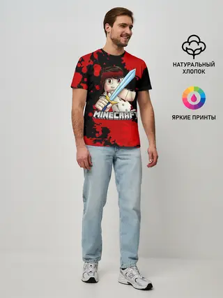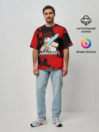 Мужская футболка оверсайз / Стив с мечом Minecraft