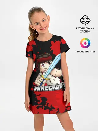 Женская футболка оверсайз / Стив с мечом Minecraft