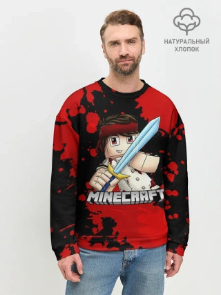 Мужской свитшот базовый / Стив с мечом Minecraft