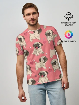Мужская базовая футболка / Мопсики и Сердечки