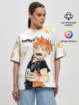 Женская футболка оверсайз / Мощный удар Шоё Хината Haikyuu!!